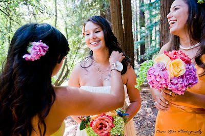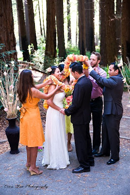 The Berkeley Botanical Gardens and Redwood Grove must be one of the most breathtaking ceremony spots I’ve seen. And what a special ceremony it was! Filled with beauty and wonderful sentiments offered by many of the guests, Tamra and Roberto just basked in the love and support of all their family and friends. Tamra looked effortlessly gorgeous in her grecian style gown and I just couldn’t get enough pictures of the two of them. I absolutely loved the flowers that were hand-crafted by Pilar Zuniga (the bridesmaid in yellow) a very talented florist who also designed Tamra’s necklace. All the best to you both and thank you for hiring Brian and I to photograph this wonderful day in your lives.